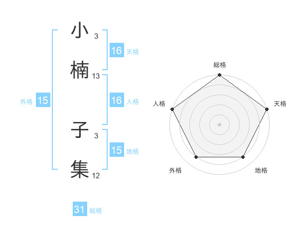 小楠 子集さんの総格は31画の5点!