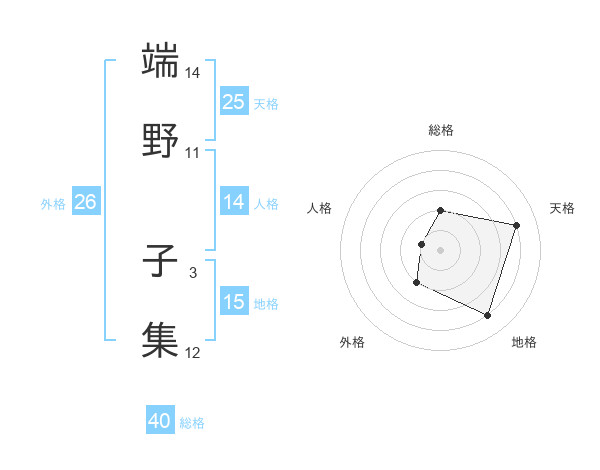 端野 子集さんの総格は40画の2点!