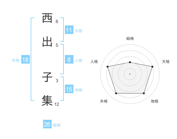 西出 子集さんの総格は26画の2点!