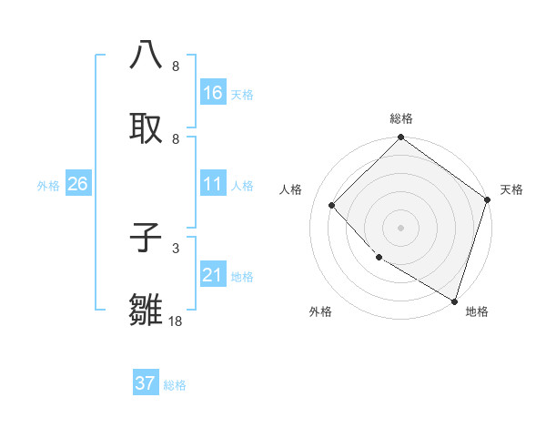 八取 子雛さんの地格は21画の5点!