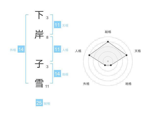 下岸 子雪さんの総格は25画の4点