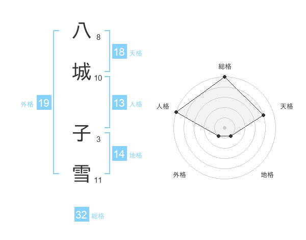 八城 子雪さんの天格は18画の4点!