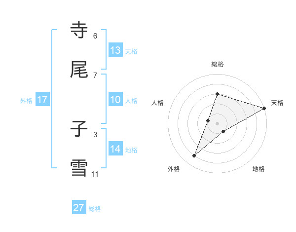 寺尾 子雪さんの天格は13画の5点!