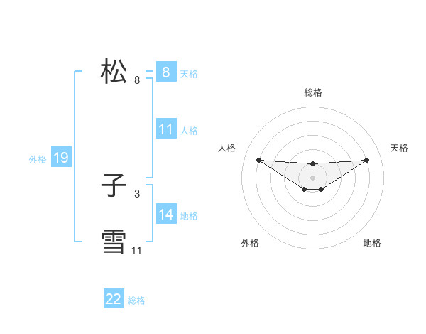 松 子雪さんの総格は22画の1点!