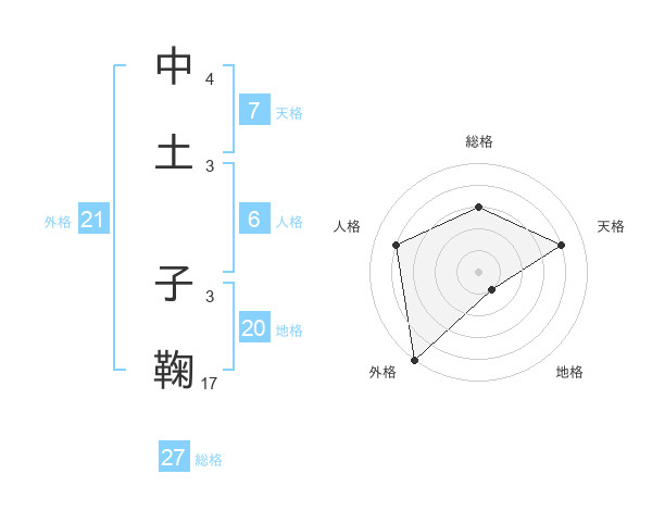 中土 子鞠さんを姓名の画数から五運を鑑定