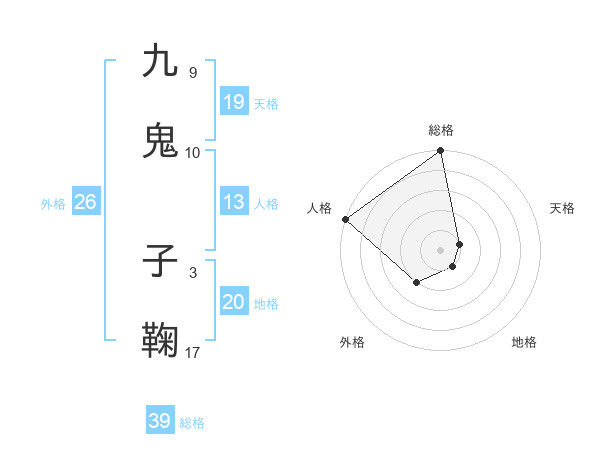 九鬼 子鞠さんの外格は26画の2点!
