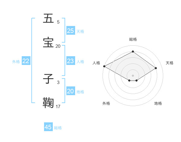 五宝 子鞠さんを姓名の画数から五運を鑑定