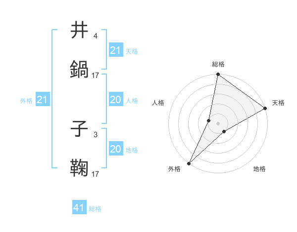 井鍋 子鞠さんの外格は21画の5点!