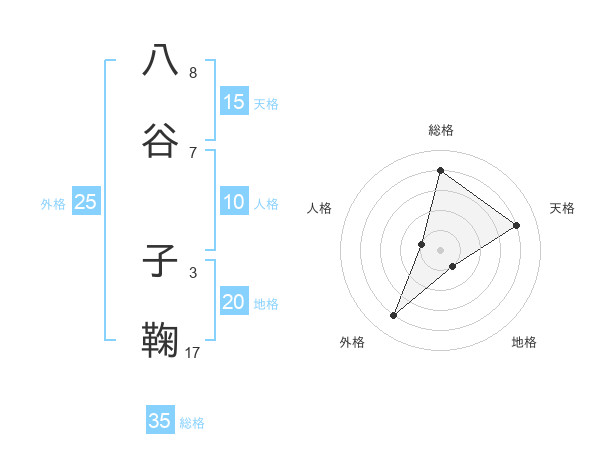八谷 子鞠さんを姓名の画数から五運を鑑定
