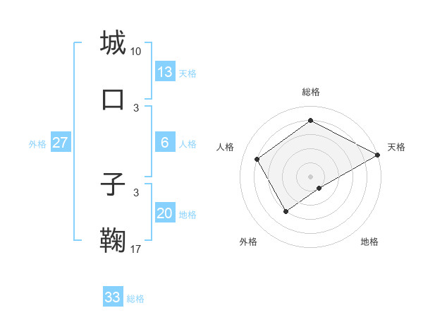 城口 子鞠さんの総格は33画の4点!