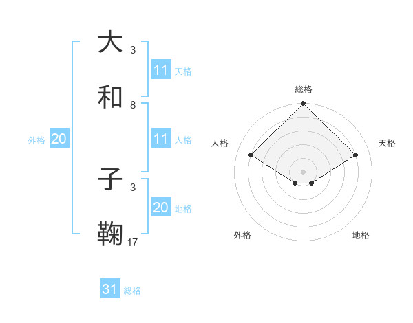 大和 子鞠さんを姓名の画数から五運を鑑定