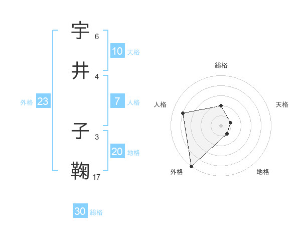 宇井 子鞠さんの外格は23画の5点!