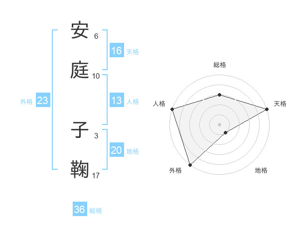 安庭 子鞠さんの外格は23画の5点!