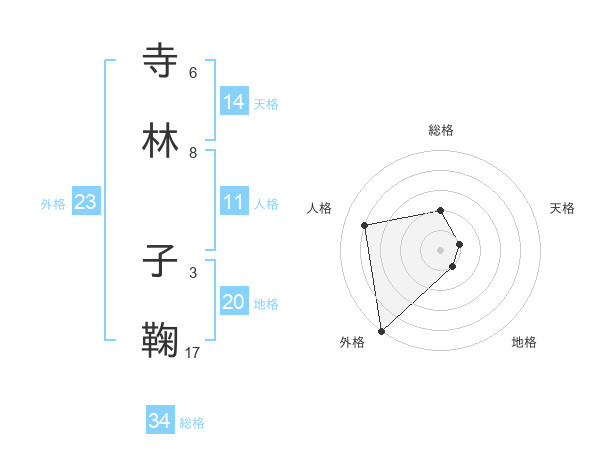 寺林 子鞠さんの外格は23画の5点!
