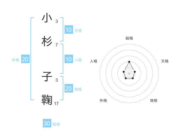小杉 子鞠さんの総格は30画の2点!