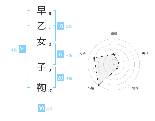 早乙女 子鞠さんを姓名の画数から五運を鑑定
