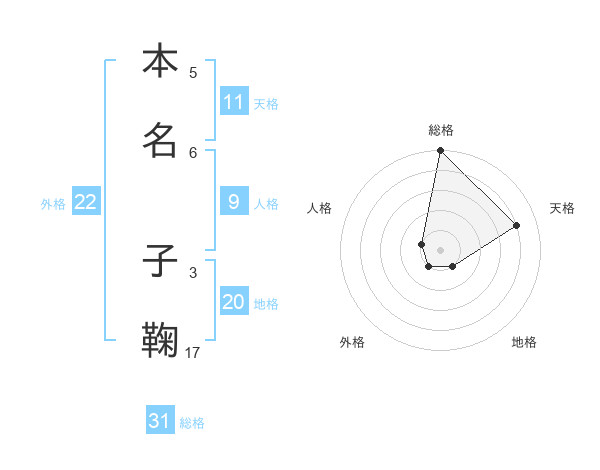 本名 子鞠さんを姓名の画数から五運を鑑定