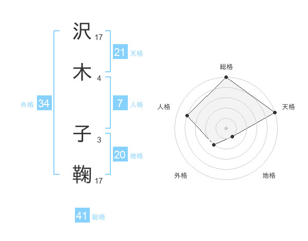 沢木 子鞠さんを姓名の画数から五運を鑑定