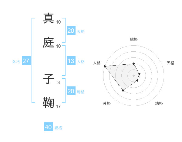 真庭 子鞠さんの外格は27画の3点!
