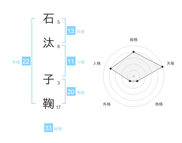 石汰 子鞠さんを姓名の画数から五運を鑑定