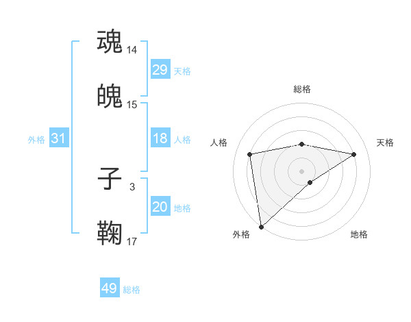 魂魄 子鞠さんを姓名の画数から五運を鑑定