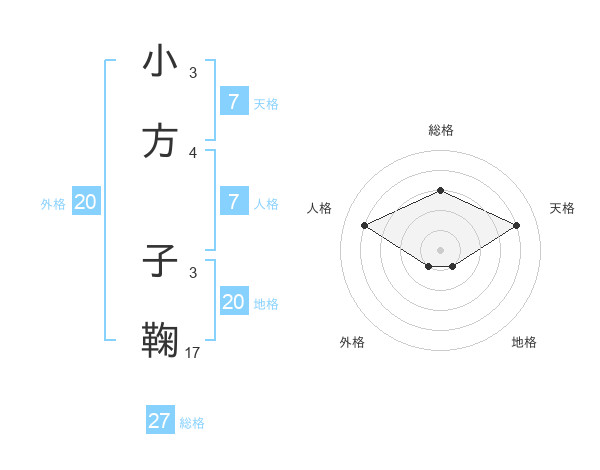小方 子鞠さんの天格は7画の4点!