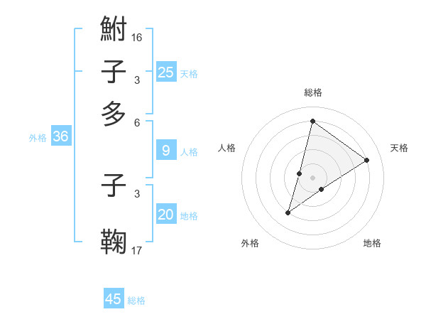 鮒子多 子鞠さんを姓名の画数から五運を鑑定