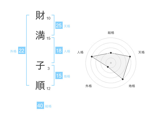 財満 子順さんの地格は15画の4点!