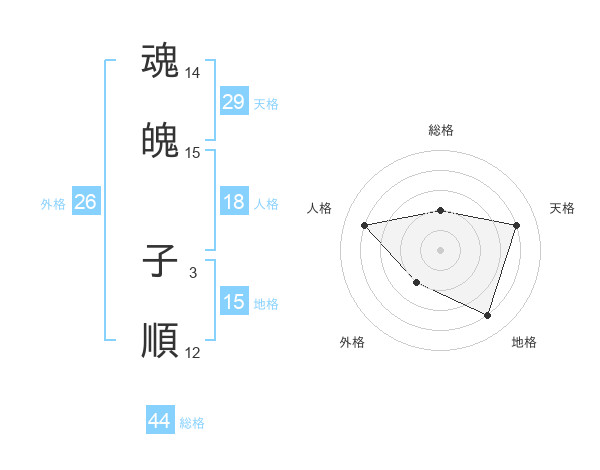 魂魄 子順さんを姓名の画数から五運を鑑定