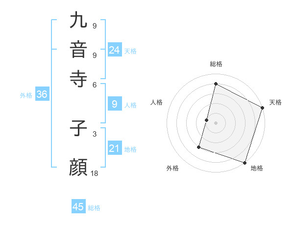 九音寺 子顔さんの総格は45画の4点!