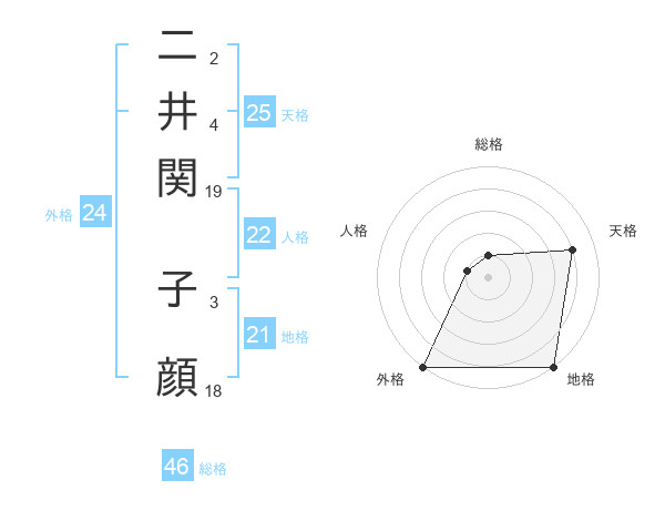 二井関 子顔さんの外格は24画の5点!