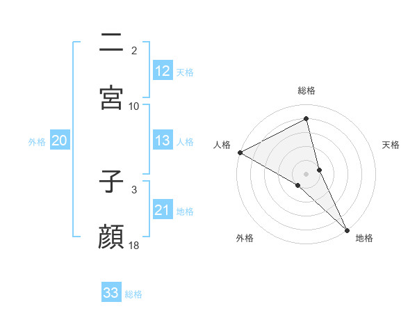 二宮 子顔さんを姓名の画数から五運を鑑定