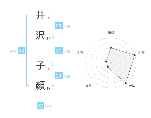井沢 子顔さんの天格は21画の5点!