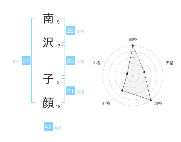南沢 子顔さんの総格は47画の5点!