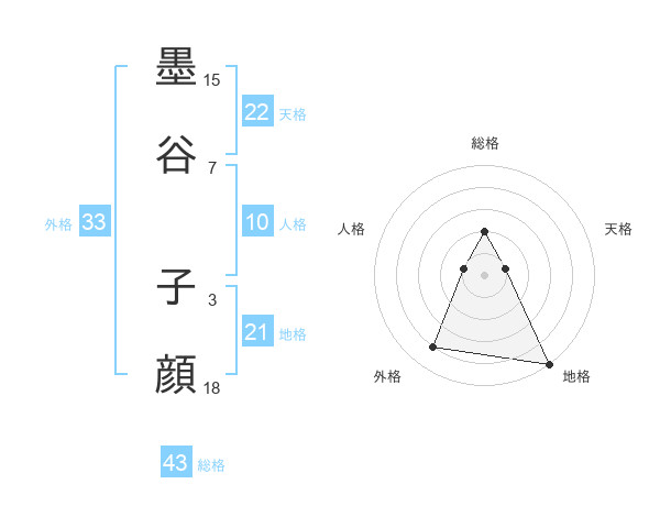 墨谷 子顔さんを姓名の画数から五運を鑑定