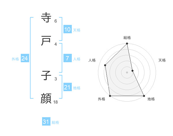 寺戸 子顔さんを姓名の画数から五運を鑑定