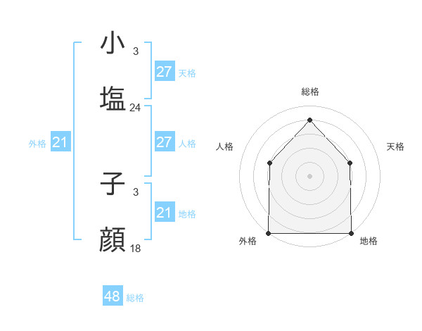 小塩 子顔さんの地格は21画の5点!