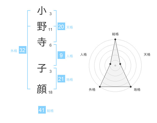 小野寺 子顔さんを姓名の画数から五運を鑑定