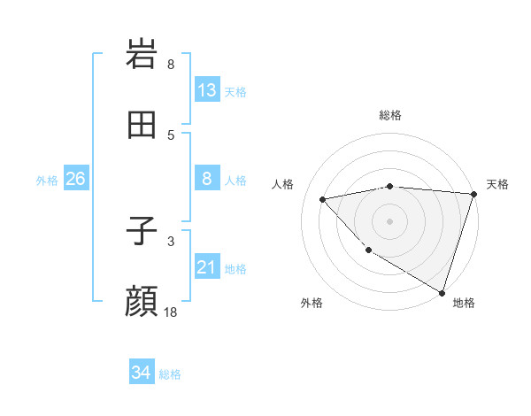岩田 子顔さんの天格は13画の5点!