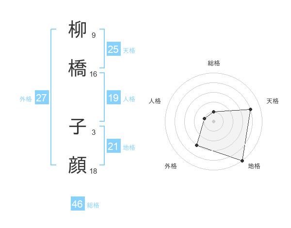 柳橋 子顔さんの天格は25画の4点!