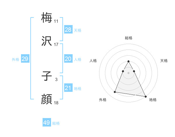 梅沢 子顔さんの総格は49画の2点!