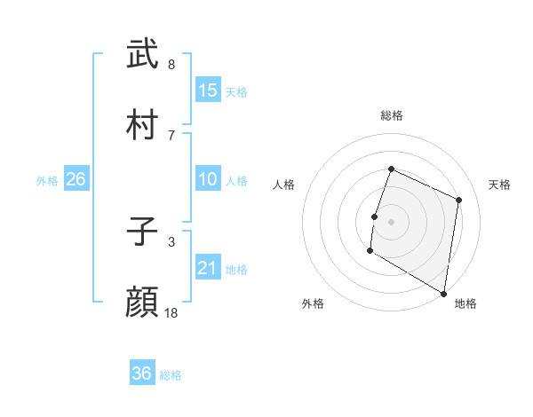 武村 子顔さんの天格は15画の4点!