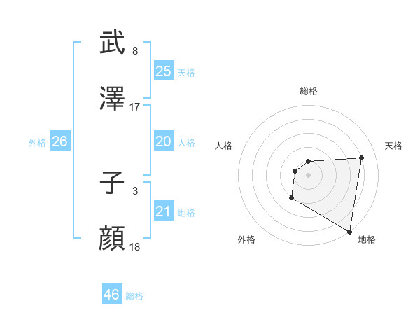 武澤 子顔さんの天格は25画の4点!