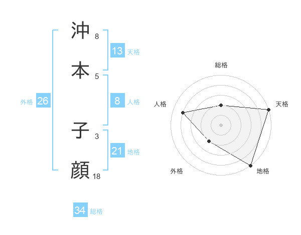 沖本 子顔さんを姓名の画数から五運を鑑定