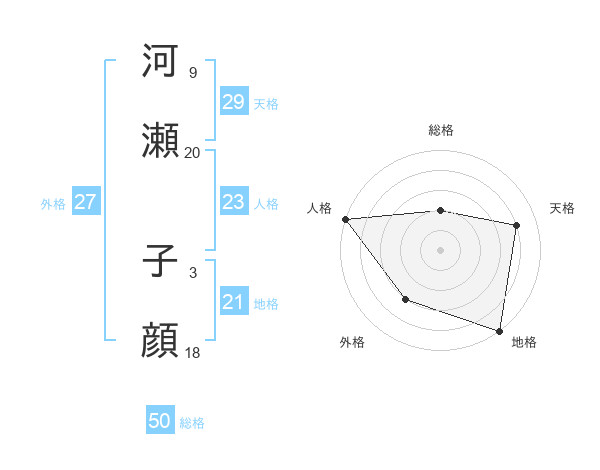 河瀬 子顔さんの総格は50画の2点!
