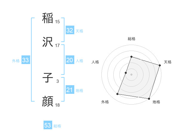 稲沢 子顔さんを姓名の画数から五運を鑑定