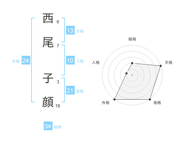 西尾 子顔さんの天格は13画の5点!
