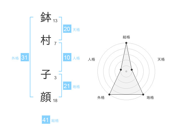 鉢村 子顔さんの総格は41画の5点!