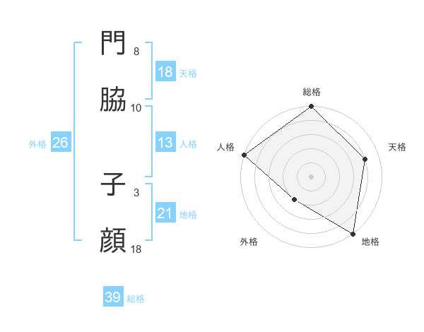 門脇 子顔さんの天格は18画の4点!