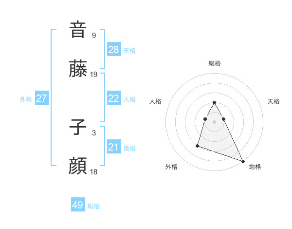 音藤 子顔さんを姓名の画数から五運を鑑定
